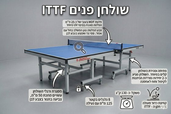 • מה כלול: שולחן + רשת הברגה מאושרת ITTF כהטבה