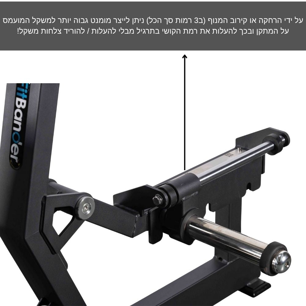 מנגנון התנגדות חדשני וייחודי המאפשר להעמיס פחות פלטות משקל ולהתאים את רמת ההתנגדות ע"י הגדלת / הקטנת המומנט! בצורה פשוטה וקלה ניתן להרחיק / לקרב את מנוף ההרמה של המשקל ובכך להגביר את רמת הקושי בתרגיל (ניתן לקבל הסבר טלפוני במידה ואופן הפעולה לא ברור ב100%).
