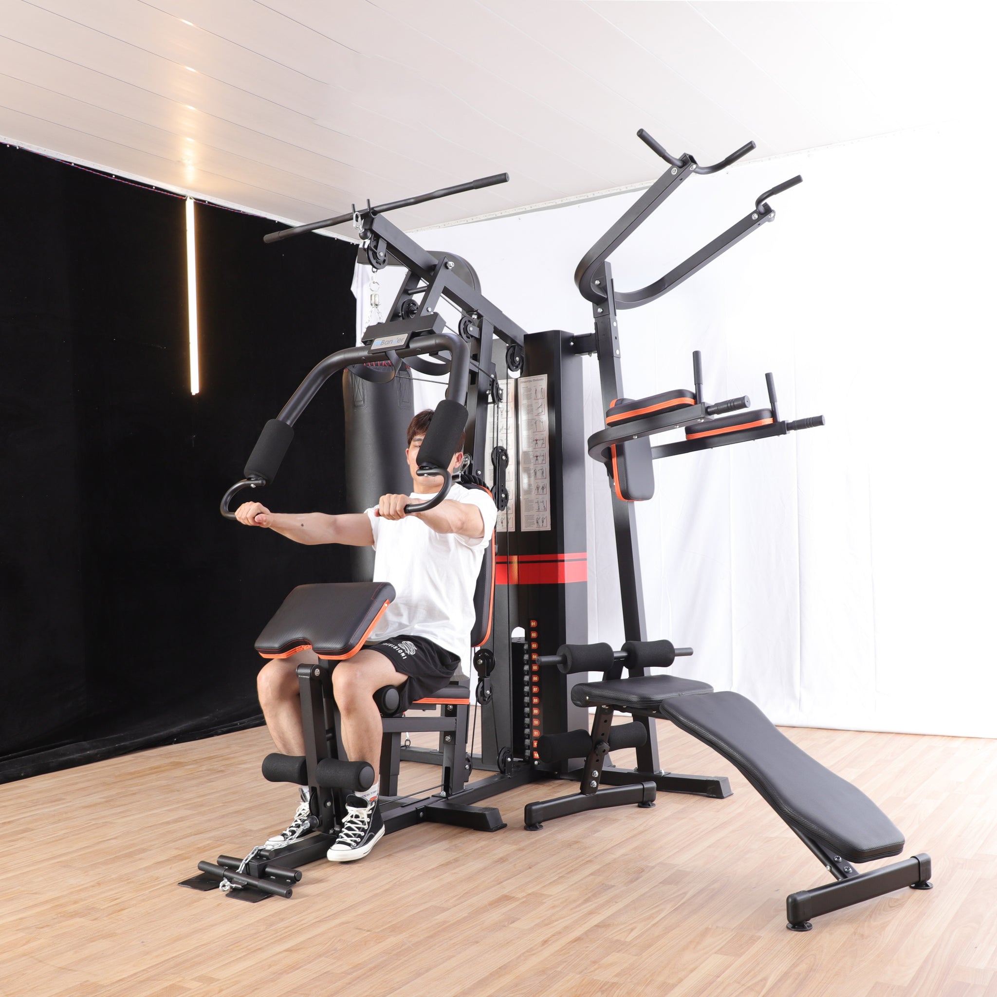 מולטי טריינר מקצועי המעניק למשתמש מענה מקיף במיוחד - מאפשר ביצוע מגוון אימוני כח לכל השרירים בגוף + אימון אירובי המבוסס על תחנת האגרוף.