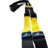 2. האם קיים גם מאריך (החלק הצהוב עם השאקל בראשו שמגיע בנפרד) המאריך חשוב בביצוע תרגילים בעיקר בחוץ ובסטודיו, שכן הרצועות לא ארוכות מספיק לבדן על מנת לבצע את כל התרגילים השונים, כמו כן המאריך גם מרחיב לנו את האופציות לעיגון הרצועות.